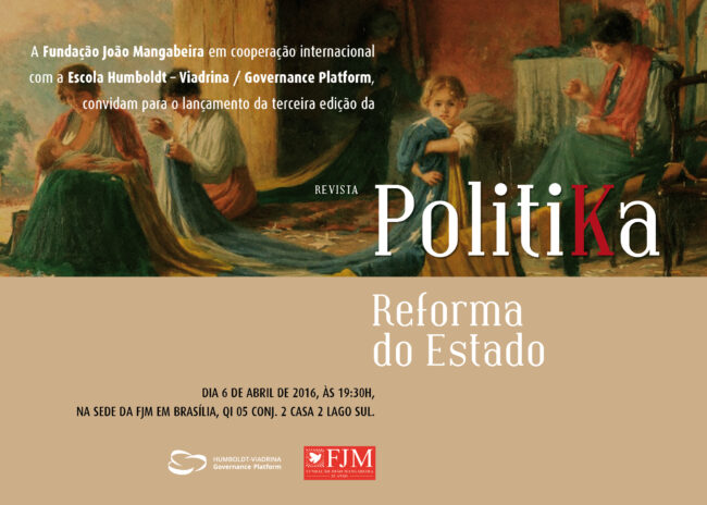 A Fundação João Mangabeira (FJM) lança, no próximo dia 6 de abril, a partir das 19h30, na sede da FJM, em Brasília, o terceiro número da revista “Politika”. Nesta edição, é abordada a necessidade de uma reforma do Estado brasileiro. Especialistas e líderes destacam, em diversas abordagens, a importância de mudanças estruturais na organização do…
