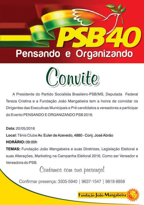Fundação João Mangabeira e sua Diretrizes – Legislação Eleitoral e suas Alterações – Marketing na Campanha Eleitoral 2016 EventosPor xrilo20 de maio de 2016