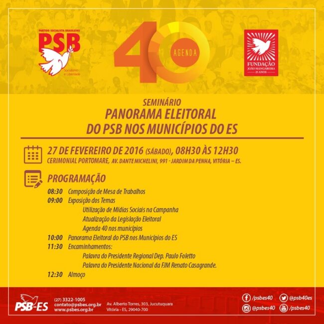 Na ocasião, Renato Casagrande reafirmou oposição ao governo Dilma e defendeu que o PSB é a alternativa para o Brasil O presidente nacional da Fundação João Mangabeira Renato Casagrande esteve, ontem, em Fortaleza, para o I Encontro Estadual do PSB Ceará, uma ação em fortalecimento da bandeira do partido no estado. Ao seu lado,…
