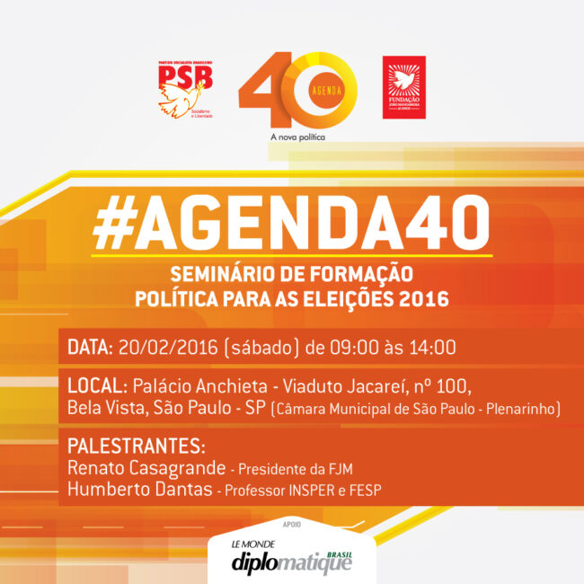 O Partido Socialista Brasileiro (PSB) e a Fundação João Mangabeira mobilizam a militância e autoridades socialistas em mais uma edição do programa “Agenda40”. Desta vez, representantes do Estado de São Paulo fazem o primeiro grande encontro do ano, reunindo os principais líderes para discutirem a conjuntura política atual e as eleições municipais de outubro. O…
