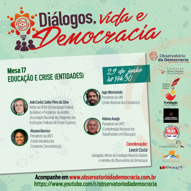 O Pense Brasil Virtual discute Mídias e comunicação como vetores de governança e cidadania: regulação e socialização. O debate será entre o jornalista Luis Nassif; a Coordenadora do Intervozes – Coletivo Brasil de Comunicação Social, Bia Barbosa, e o deputado federal e líder do PSB na Câmara, Alessandro Molon. A mediação será do presidente da…