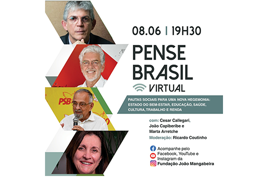 A Fundação João Mangabeira (FJM), do Partido Socialista Brasileiro (PSB), realizará a sétima edição do Pense Brasil Virtual, que vai discutir as “Pautas sociais para uma nova hegemonia: Estado do Bem-Estar, Educação, Saúde, Cultura, Trabalho e Renda.” O evento será realizado nas plataformas digitais da Fundação, dentro da necessidade de evitar o contato pessoal durante…