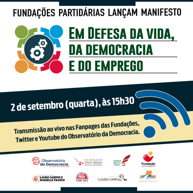Elaborado para fazer frente aos prejuízos humanos, econômicos e sociais provocados pela pandemia de Covid-19 no Brasil, o manifesto Em defesa da vida, da democracia e do emprego, foi lançado no último dia 2 de setembro pela Fundação João Mangabeira e mais seis fundações partidárias. A moderação e abertura do evento virtual de lançamento do manifesto foi…