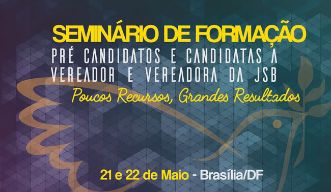 A Juventude Socialista Brasileira (JSB) convida seus pré-candidatos a vereador para o seminário “Campanha Eleitoral: Poucos Recursos e Grandes Campanhas”, que será realizado em Brasília, no Hotel Nacional, nos dias 21 e 22 de maio. As inscrições começam nesta segunda-feira (9) e terminam no próximo domingo (15).