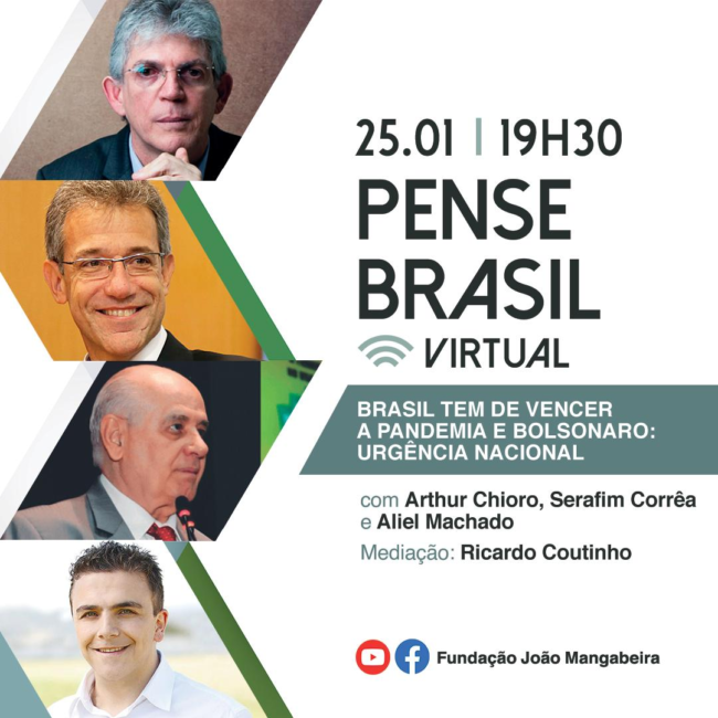 A 28ª edição do Pense Brasil Virtual terá como tema “O Brasil tem de vencer a pandemia e Bolsonaro: urgência nacional” e reunirá conferencistas para discutir a atuação do governo Bolsonaro no combate a pandemia que recrudesceu nos últimos dias. Moderado pelo presidente da Fundação João Mangabeira e ex-governador da Paraíba, Ricardo Coutinho, o debate…